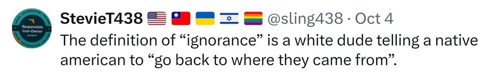 He also further denigrated the Indigenous peoples of North America by claiming they don’t exist.