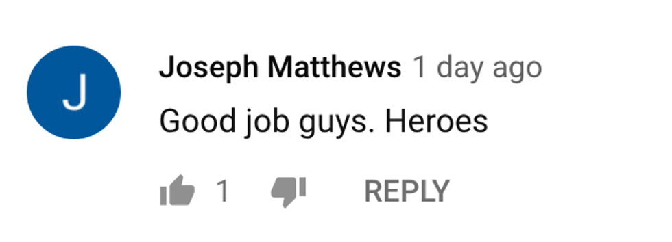 One YouTube comment expressed gratitude for the officers who do not receive enough praise for what they do.