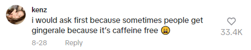 But to simply swap in the fake ginger ale and expect someone not to notice means lying to the customer—and for those who are sensitive to caffeine, it could even lead to an unsafe, or at least unpleasant, situation after.