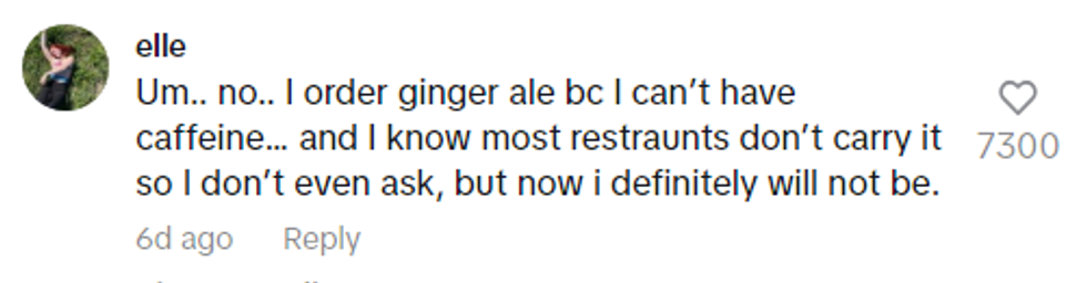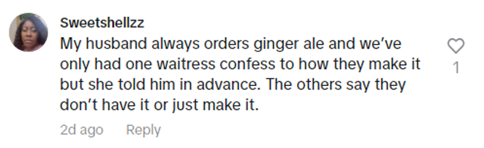 A restaurant server and bartender revealed that when a person orders a ginger ale, there's a good chance that they're getting something that looks and tastes similar but is not, in fact, ginger ale.