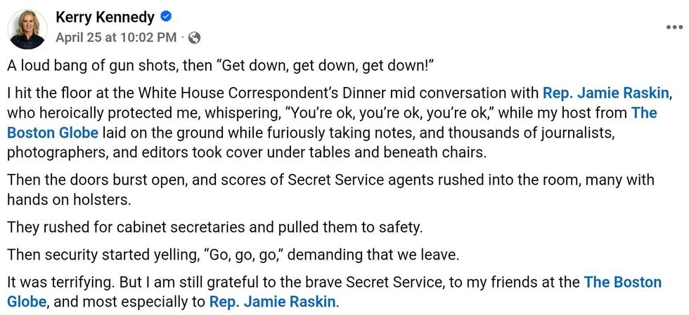 Kerry shared that while Representative Raskin "heroically protected" her, he also comforted her, whispering: