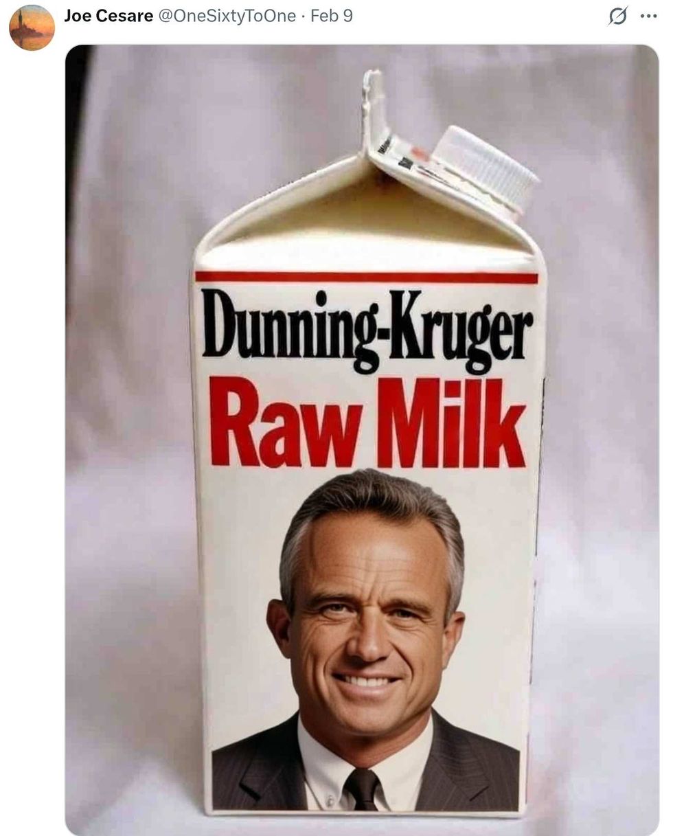 Towards that end, Kennedy has gutted programs, stopped legitimate scientific and medical research, promoted pseudoscience and conspiracy theories, spread misinformation, destroyed the credibility of the Centers for Disease Control and Prevention (CDC) and the National Institutes of Health (NIH) by placing false information on their websites, redone nutrition guidance based on his own diet, pushed the consumption of dangerous raw milk, and many other destructive things.