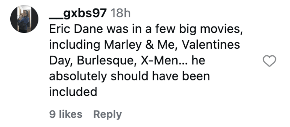 "We can't fault the Oscars for the fact that they're looking at movies. And there were so many people who were lost, but Eric was unique to television, and I can't wait to see what they do with him [at the Emmys]."