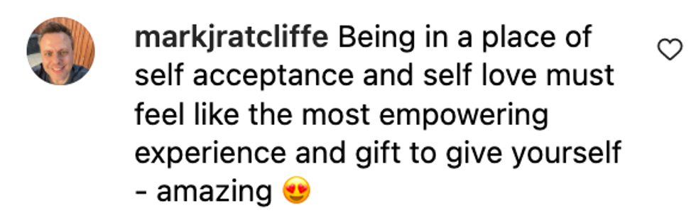 "Grateful for all that had to happen for me to get to here. A place of complete self-acceptance and self love.