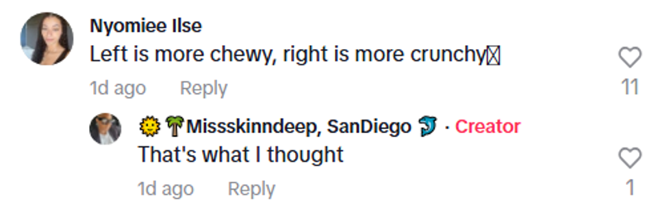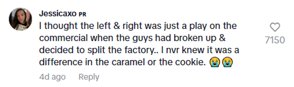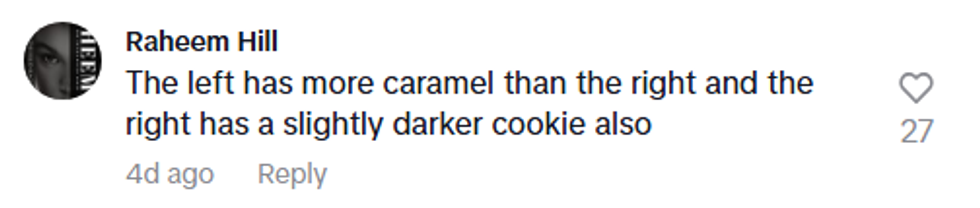 "She said, 'Yeah, it's the differences in the caramel and in the cookie. I only like the left side."