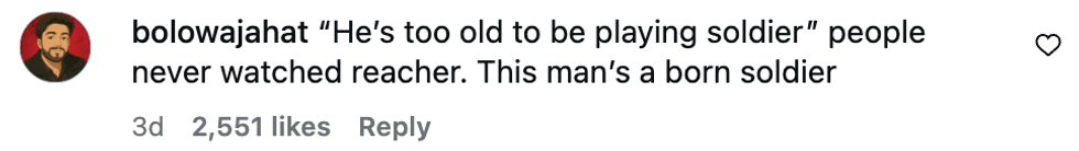 After trolls questioned his casting in the Netflix film, including his portrayal of a soldier in RASP (Ranger Assessment and Selection Program), Ritchson noted that the military recently raised its maximum enlistment age from 35 to 42, undercutting claims that he’s aged out of the role.