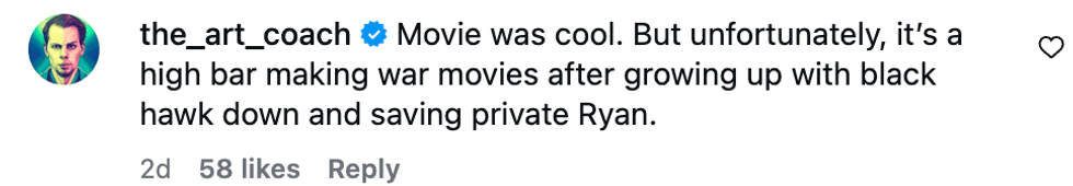 As of March 2026, War Machine, directed by Patrick Hughes, holds a 69% critics' score on Rotten Tomatoes, with audience ratings in the mid-to-low 70s. The response reflects a divided reception, as echoed across social media, with some viewers taking issue with the film’s tone while others have rallied behind Ritchson’s rebuttal.