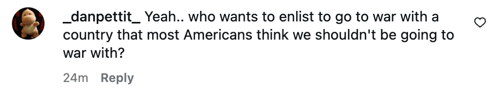 "Well, guess what? The U.S. just raised the enlistment age to what? 42! Yeah, 'War Machine prophetic now!"