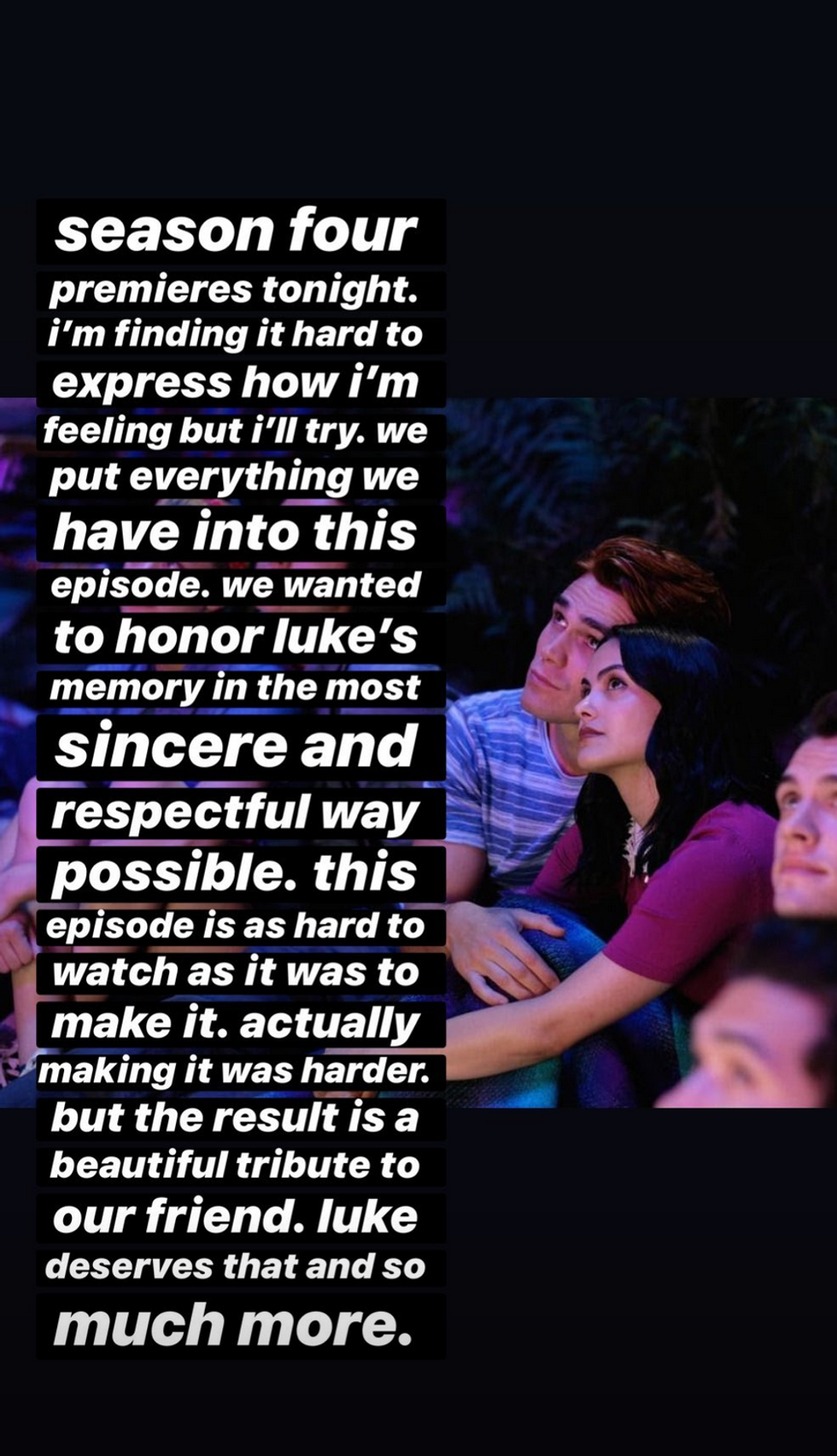 "I'm humbled by the outstanding, heroic work everyone did on it. I hope you like it, Luke. As Archie says about his dad, 'You will always be a part of Riverdale.'"