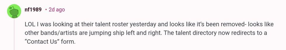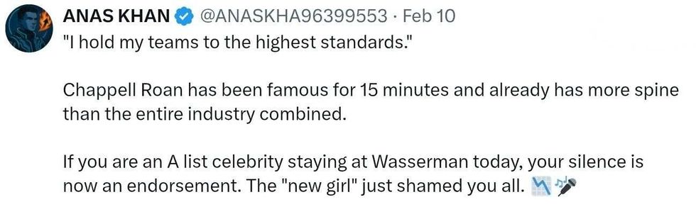 "I have deep respect and appreciation for the agents and staff who work tirelessly for their artists and I refuse to passively stand by."