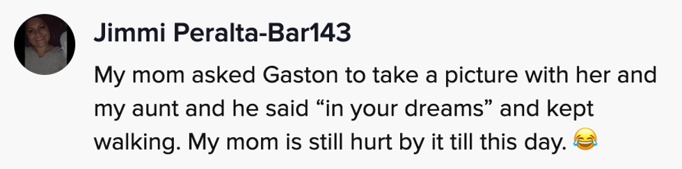 Her interaction with Gaston – the narcissistic villain from Beauty and the Beast – was not the magical Disney interaction she was hoping for but it was one she would soon forget.