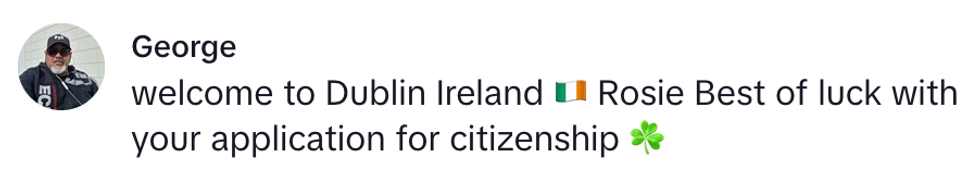 She explained she was in the process of obtaining her Irish citizenship as her grandparents were Irish.