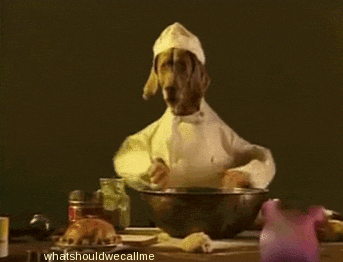 lunch dog cooking GIFGiphy"Don’t feed my dogs, anything. I don’t care how cute they are looking at you."