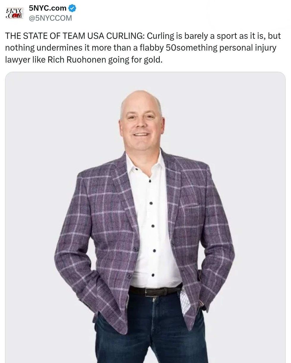 Richard Ruohonen is a curler from Brooklyn Park, Minnesota, about 18 minutes north of Minneapolis. At 54 years old, Ruohonen's first appearance at the Winter Olympics is historic as he's the oldest athlete to ever represent the United States.