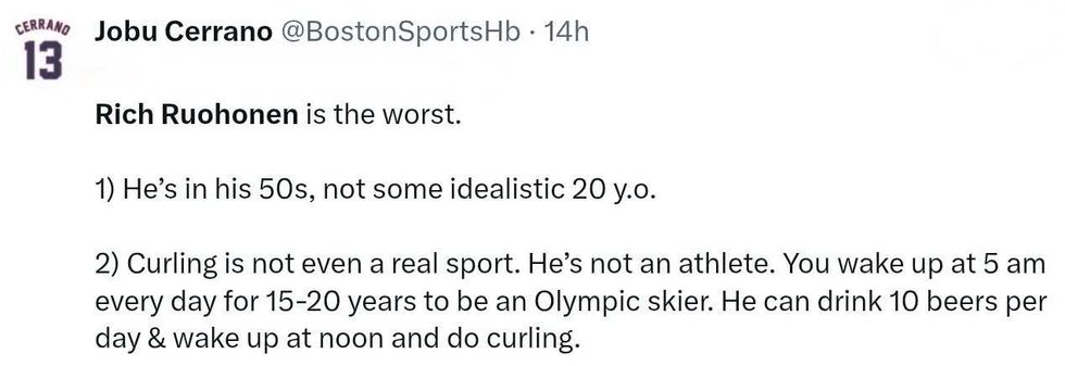 At the USA Curling press conference on Tuesday, Ruohonen stated: