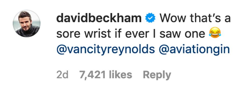 Enter Beckham, who commented on the intense labor that must have been involved with Reynolds' latest publicity endeavor for his gin brand.