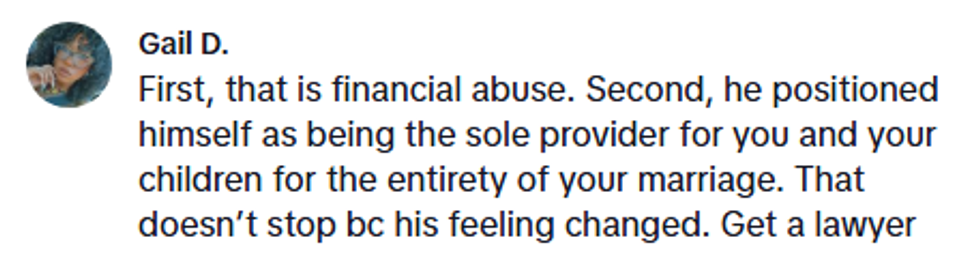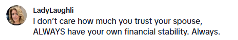 Others felt this was a cautionary tale to never fully depend on someone else for financial support.
