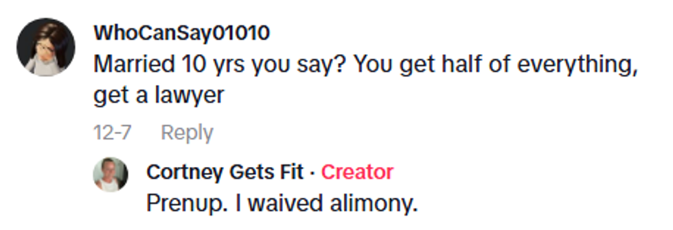 TikToker @cortneygetsfit was finding out the trouble that could put her in at the age of 37, with a five-year-old and seven-year-old who depend on her, after her husband suddenly wanted to get a divorce.