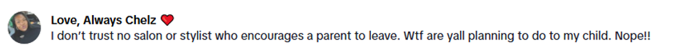 Fellow TikTokers were alarmed by the fact that the hair salon wanted children to be alone.