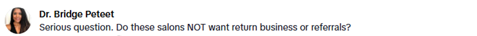 The mom decided to pay, knowing that she would never walk back into that salon.