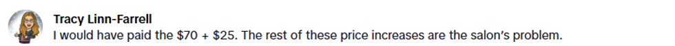 When it was time to pay, the haircut was $70—and the stylist added a $45 "non-compliance fee" for staying in the salon. When Mel said she thought it was $25, she was told the other stylist was mistaken.