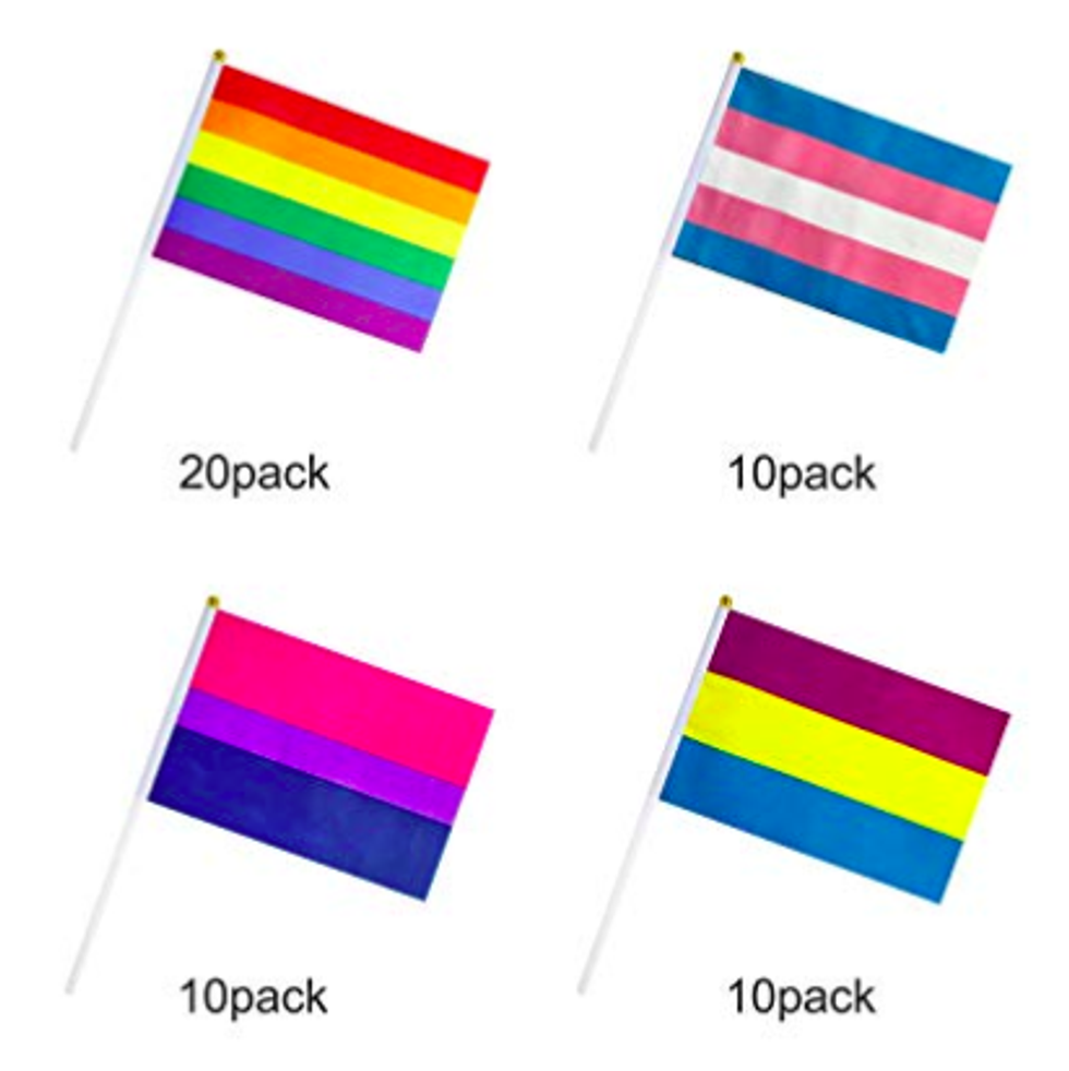 You can spruce up your house or your whole neighborhood for less than $12 and get a 50 Pack of Rainbow Gay Pride, Transgender Pride, Bisexual Pride and Pansexual Pride mini Flags, available here.