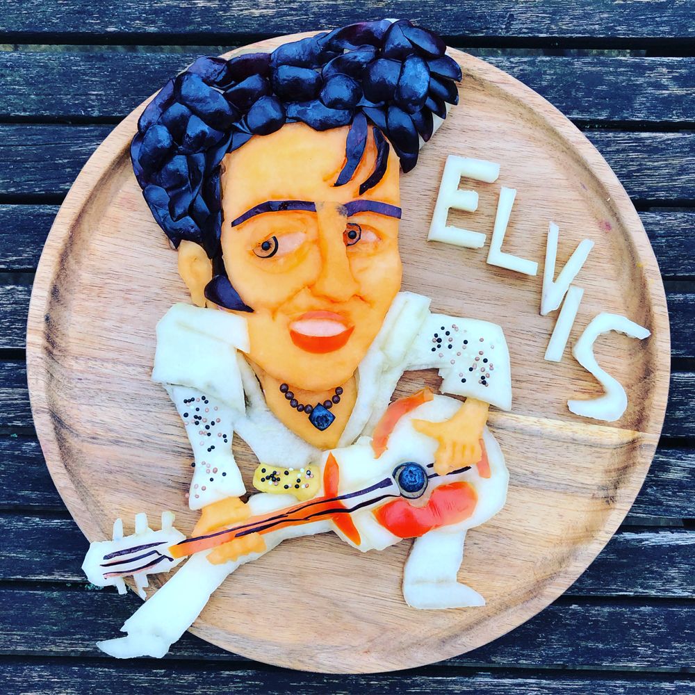 Sarah has also made renowned physicist Albert Einstein out of watermelon, mango, melon, grapes and chocolate, Nirvana frontman Kurt Cobain from mango, watermelon, papaya, kiwi and blueberries, Golden Girls actress Betty White using blueberries, mango, red pepper and grapes, and King of Rock and Roll Elvis Presley with melon, grapes, blueberries and tomato.