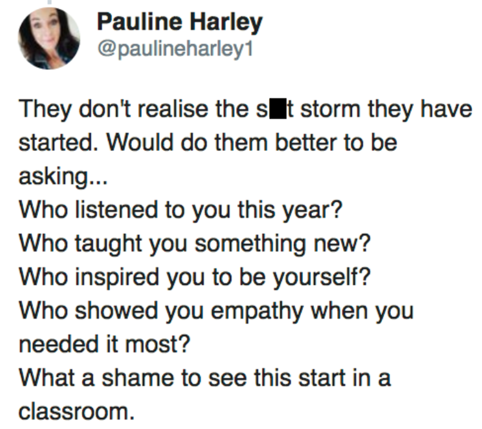 A later post added : “An internal investigation was launched (Wednesday) yesterday as to why the member of staff produced this document as it totally goes against the ethos of the school."