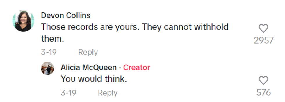 Fellow TikTokers encouraged McQueen to keep pushing for answers.