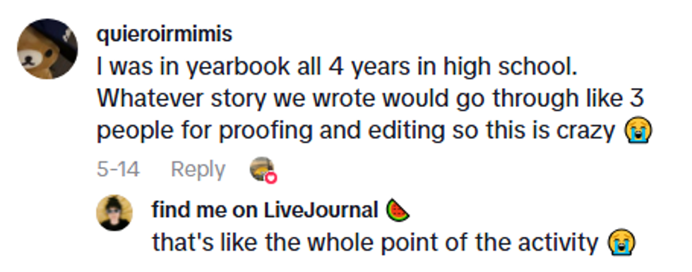 Others who had been involved in their school's yearbook team were offended that the drafting process had come to this.