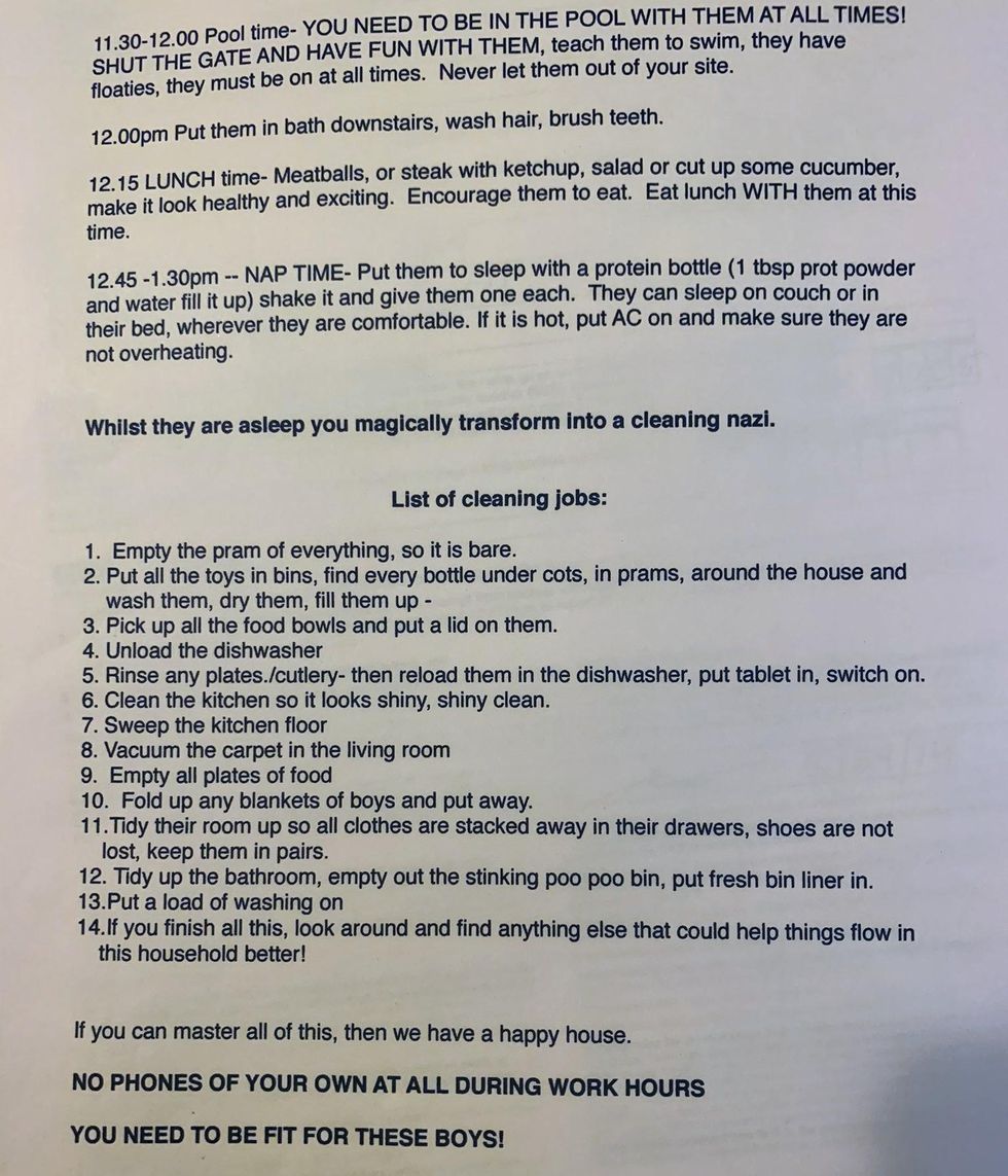 In 2013, I interviewed with an (unbeknownst to me at the time) Scientologist family to be their nanny. They gave this absolutely BONKERS list of responsibilities and now I give it to all of you.pic.twitter.com/le0rhiBrcg— Hollis Jane Andrews (@Hollis Jane Andrews) 1620353721