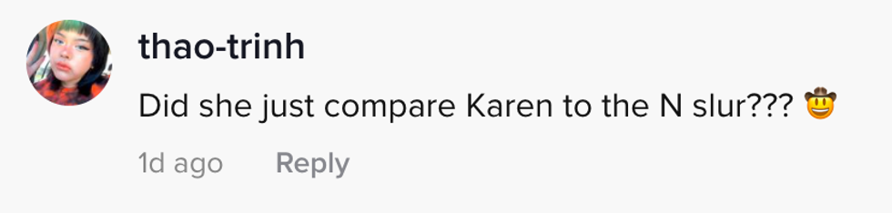 One particularly misguided Karen took it upon herself to compare "Karen" to the n-word.