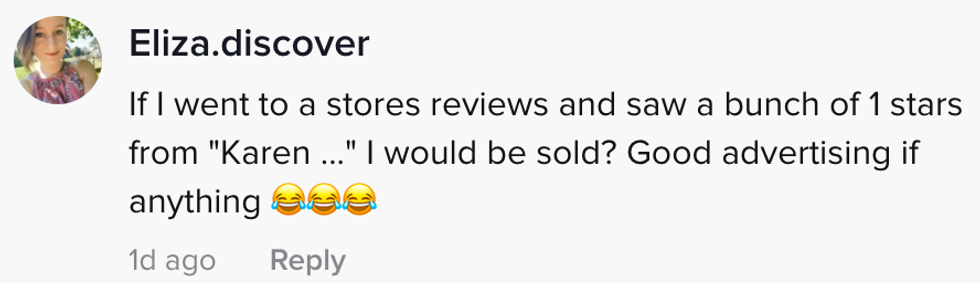 While a clever marketing ploy, the business soon found itself being bombarded with one-star reviews from people named Karen disparaging the anti-Karen aesthetic.