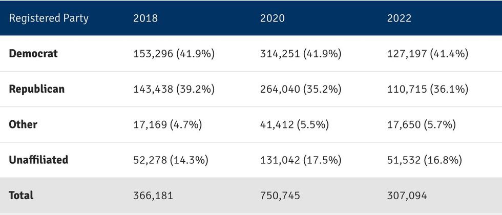 The problem, however, lies in overall voter turnout, which is lagging 2018 significantly by this same point.