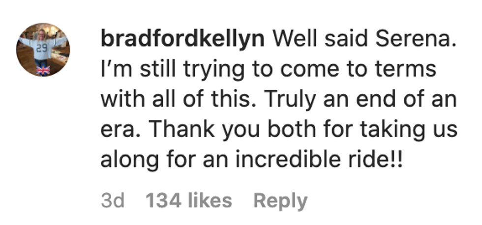 First was the general sentiment the queen and king of tennis are retiring at once and thanked them both for world-changing careers.