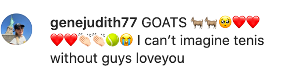 "Welcome to the retirement club. And thank you for being you [Roger Federer]."