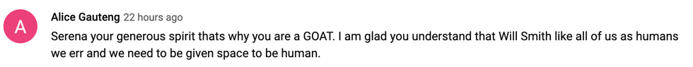 Many viewers of the video appreciated Williams' humility and her willingness to forgive.