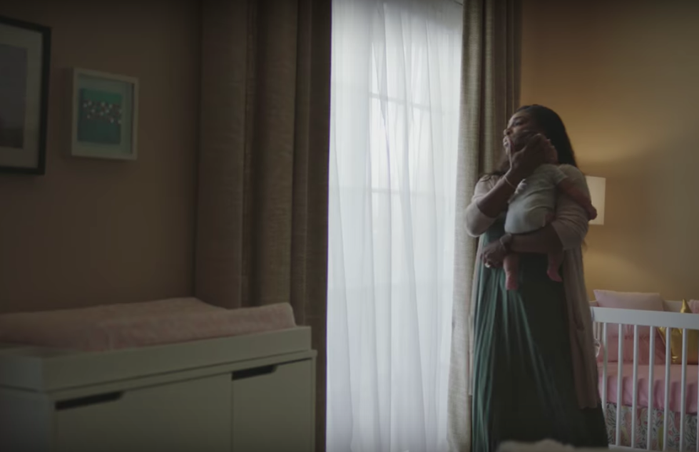 "I won't mind if you play tennis badly," Williams says, as we see her cradling her infant daughter. "I won't mind if you choose to never pick up a racket."