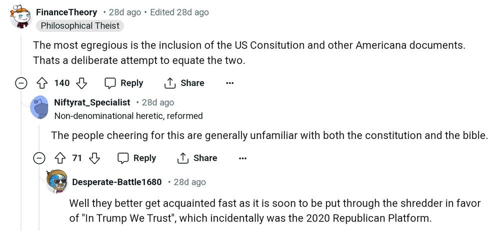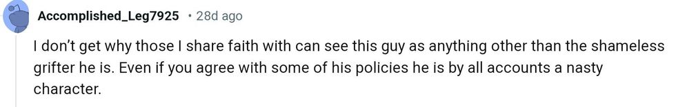 He also reiterated his disgust over Trump's God Bless the USA Bible grift.