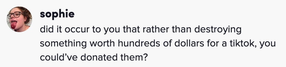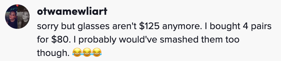 She channeled her outrage in a TikTok video and held up the pair of glasses supposedly left behind by one of the dashers and said: