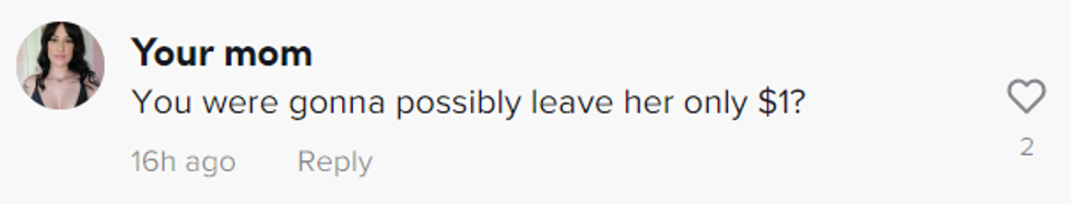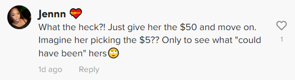 Whether she selected the $1 or $50 bill, that would have been her tip.