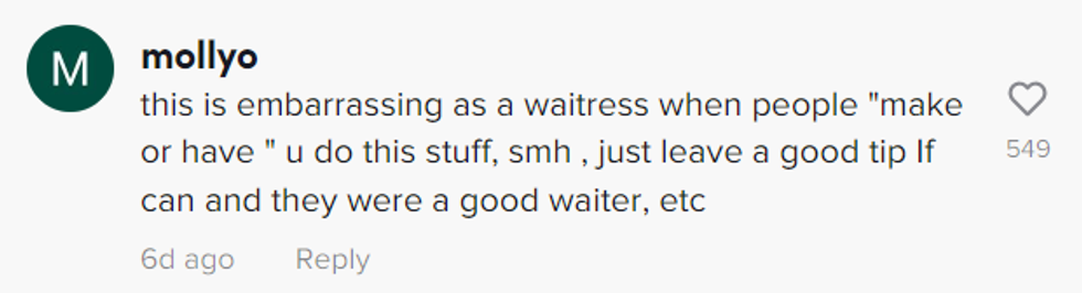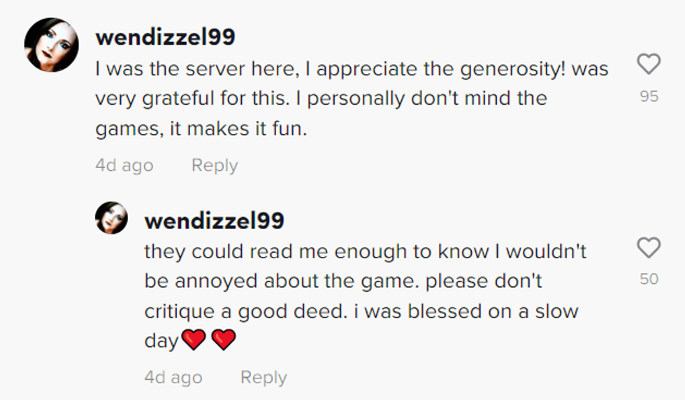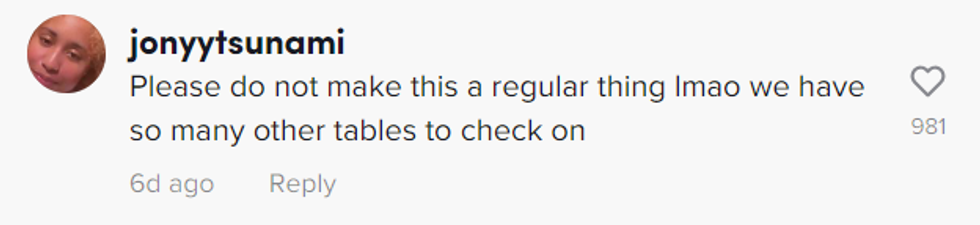 It's great to see the alleged server involved thought this was a fun experience to have on a slow evening in her restaurant, but the rest of TikTok was not convinced.