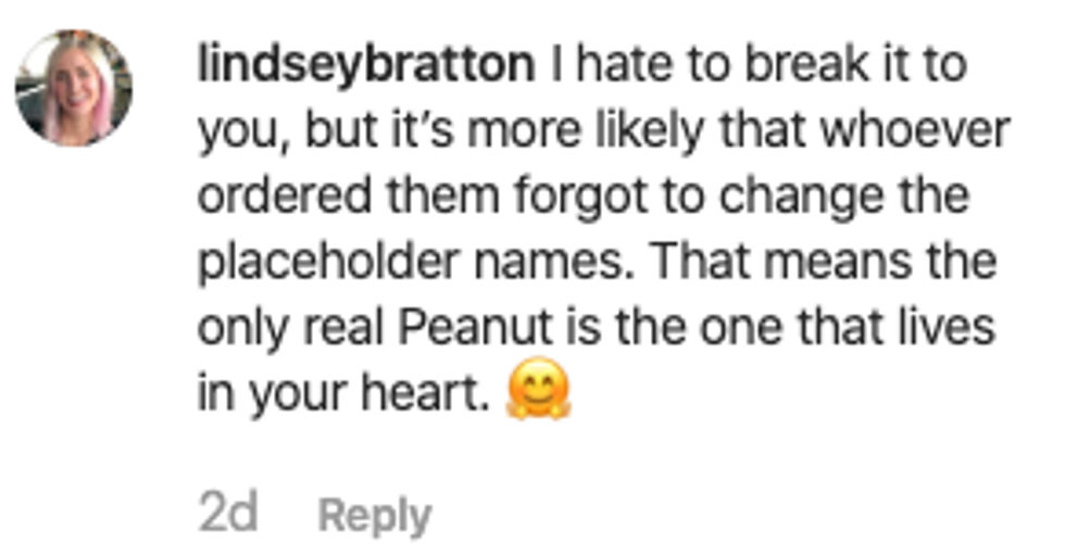 "Is Peanut a pet? Probably. But maybe they are a small child or a live-in grandparent."