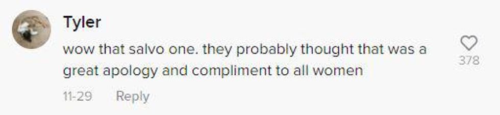The next one was a tag that read "Give this jersey to your woman. It's her job," and this company had an "apology" of sorts:
