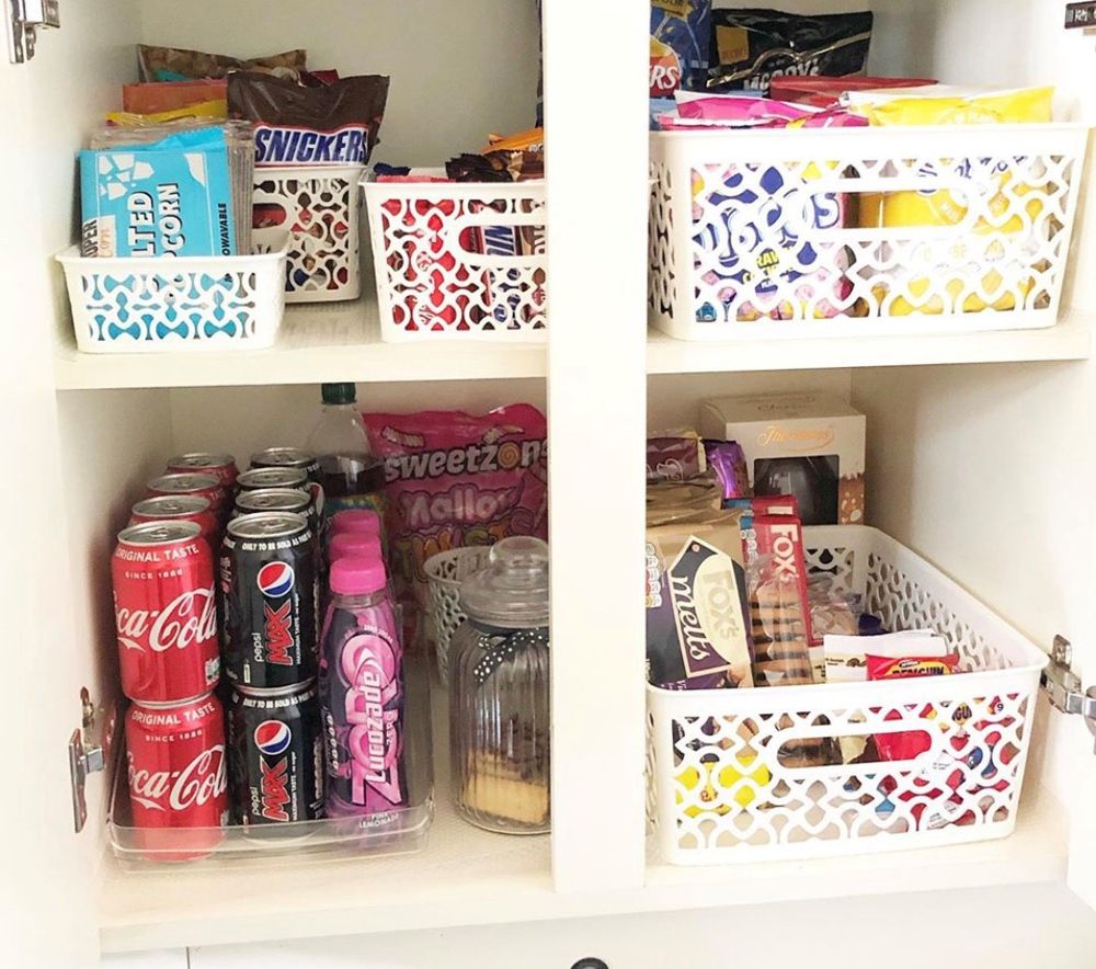 To avoid clutter, everything is kept in corresponding baskets, which she buys for just a few pounds from B&M or Poundstretcher.