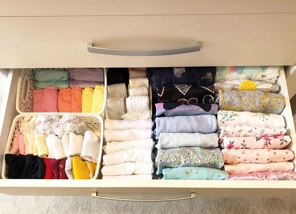 - Stack clothes lengthways rather than on top of each other, so nothing is hidden