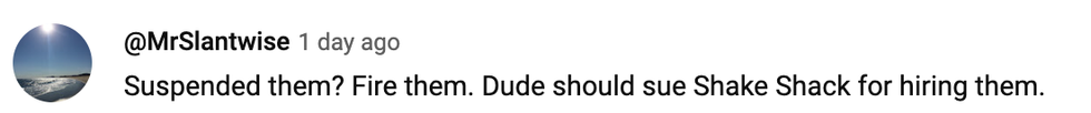 A spokesperson for Shake Shack said all employees involved were suspended pending further review.