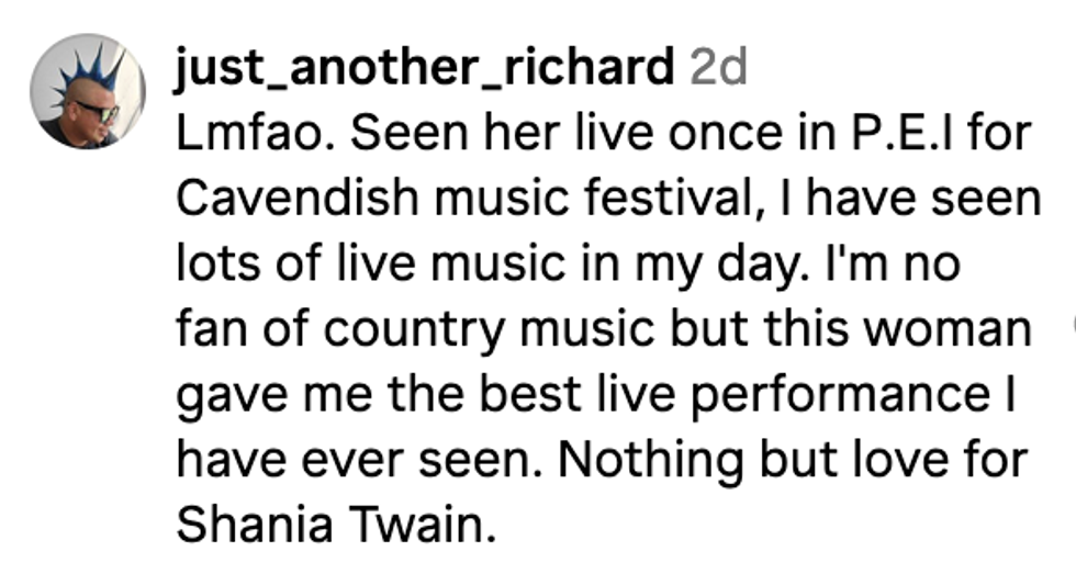 In an Instagram post, Twain shared the moment, captured by a TikTok concertgoer, and wrote: