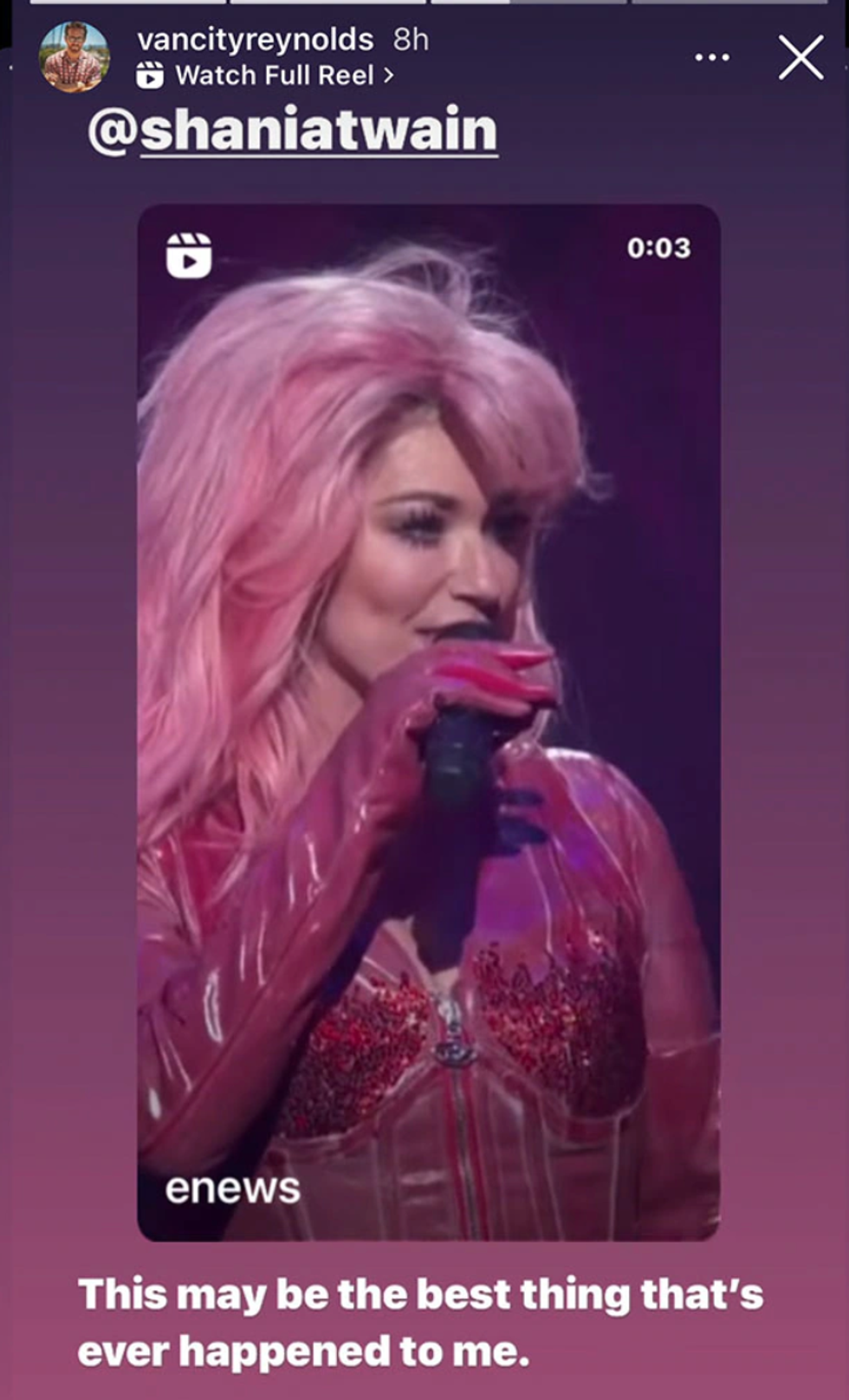 You can say a lot about how Ryan Reynolds here has made it… but nothing… NOTHING will ever say he’s achieved top tier more… than Shania Twain using his name in that song live.