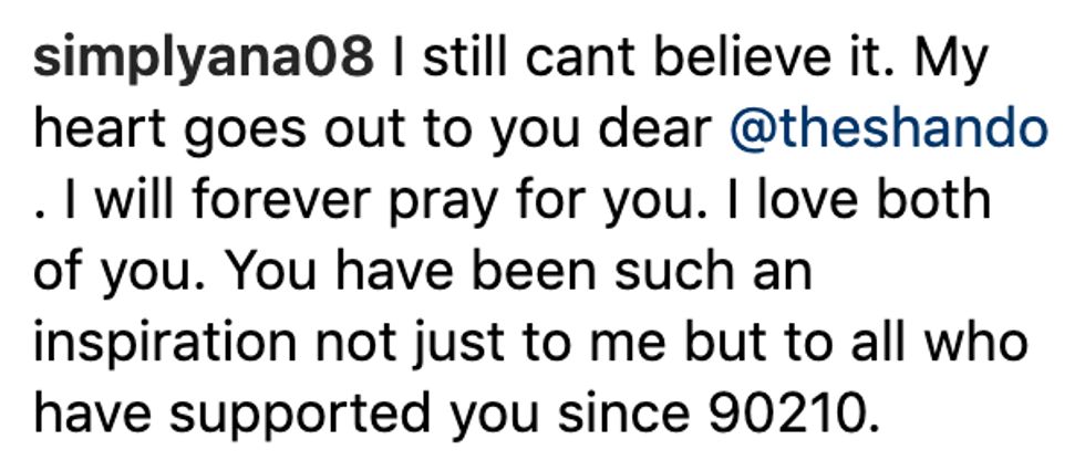 The 47-year-old actress shared her grief on Instagram with a recent photo of the two of them along with photos of their time together during 90210.